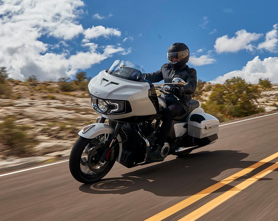 | Wyposażenie standardowe | Współpracujący z systemem Ride Command 7-calowy ekran dotykowy z funkcją nawigacji oraz Apple CarPlay, technologia Smart Lean, wybór trybu jazdy: Zamykane kufry: Hamulce Brembo: Ponad 60 l przestrzeni bagażowej: System ABS: Zapłon bezkluczykowy: Owiewka mocowana do ramy: Regulowane nawiewy w owiewkach, elektryczna przednia szyba: Regulowane nawiewy, gniazdo ładowania 12 V |