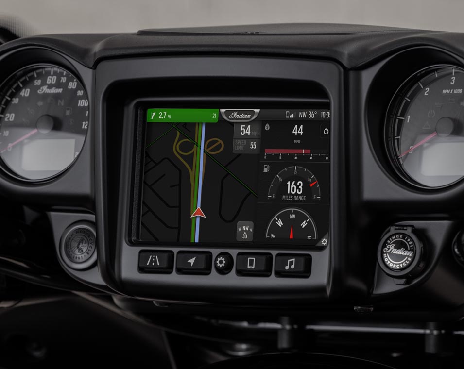 | System informacyjno-rozrywkowy | Współpracujący z systemem Ride Command 7-calowy ekran dotykowy: 7-calowy wyświetlacz dotykowy, na który składają się następujące wskazania i funkcje: zegar, wskazania temperatury zewnętrznej, kurs, wyświetlacz systemu audio, stan połączenia Bluetooth dla telefonu i zestawu słuchawkowego, informacje o stanie technicznym (ciśnienie w oponach, napięcie, czas pracy silnika, termin wymiany oleju), informacje o pojeździe (prędkość, zasięg, prędkość obrotowa, wybrany bieg), bieżące parametry jazdy (odległość, czas jazdy, czas postojów, wysokość nad poziomem morza, zmiany wysokości), liczniki przebiegu dziennego, wybór trybu jazdy, ustawienia jasności ekranu, wskazania komunikatów diagnostycznych oraz funkcja Apple CarPlay. |