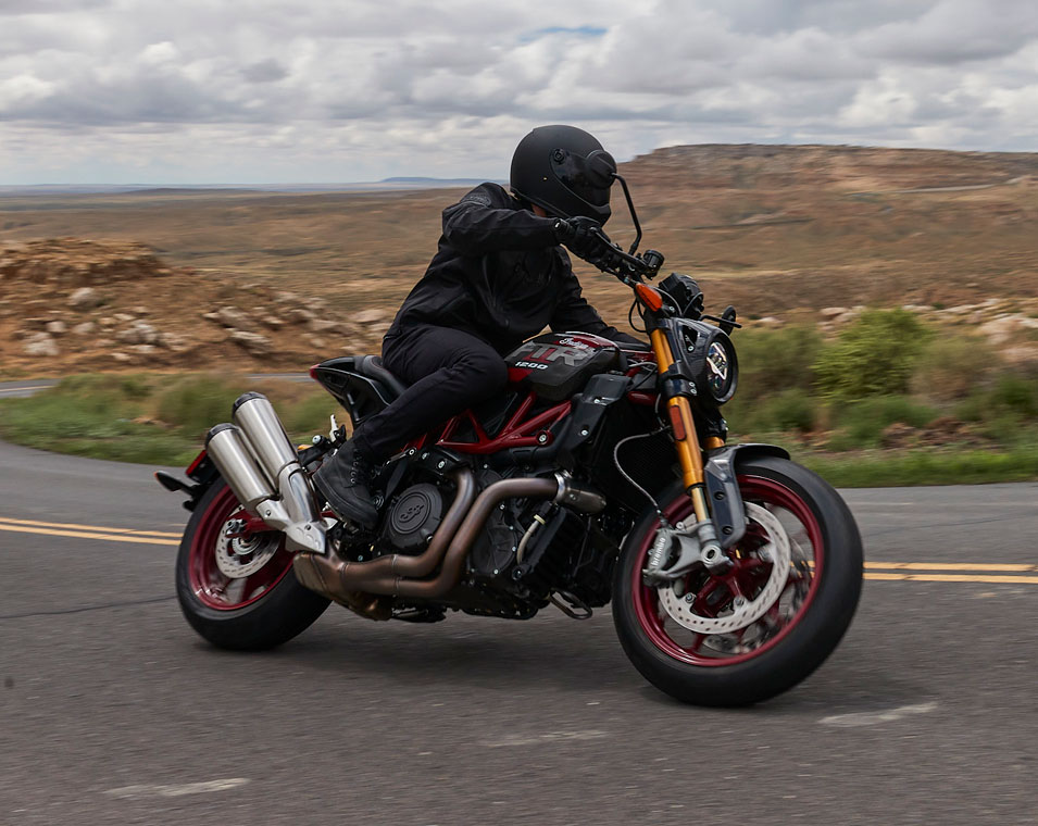 Czy to na biegu jałowym, czy przy przyspieszaniu, potężny silnik FTR podkreśla styl motocykla. Nie zapomnij podkręcić głośności!