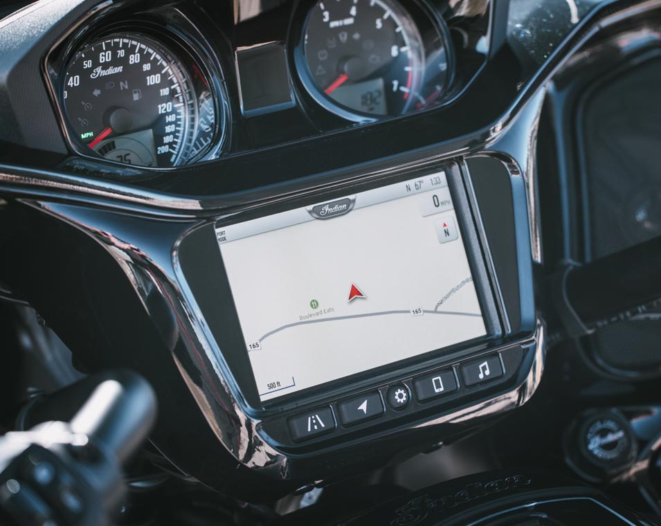 | Ride Command® | 7-calowy wyświetlacz fabrycznie zainstalowany z nawigacją GPS, Apple CarPlay®, łącznością Bluetooth®, konfigurowalnymi wskaźnikami, statystykami jazdy i innymi funkcjami. |